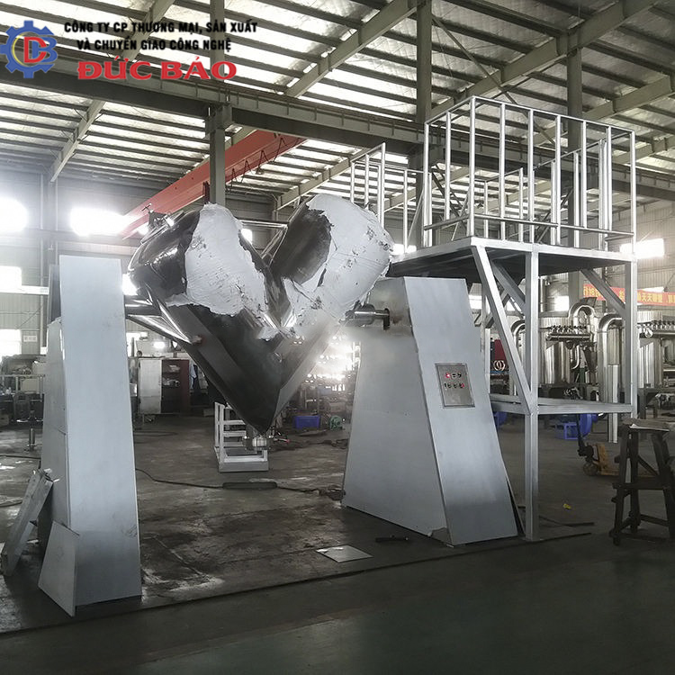 Máy trộn bột 200kg chữ V thiết kế vật liệu thép không gỉ SUS 304 hoặc SUS 316 theo nhu cầu của Quí khách hàng